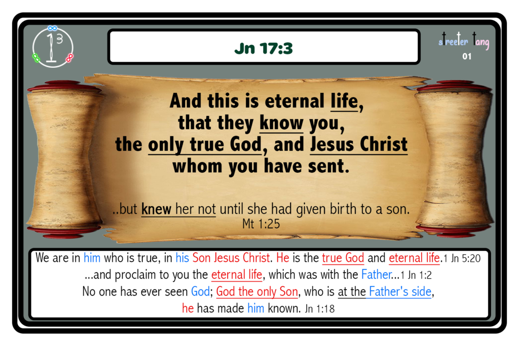 And this is life eternal, that they might know thee the only true God, and Jesus Christ whom thou hast sent. (KJV)